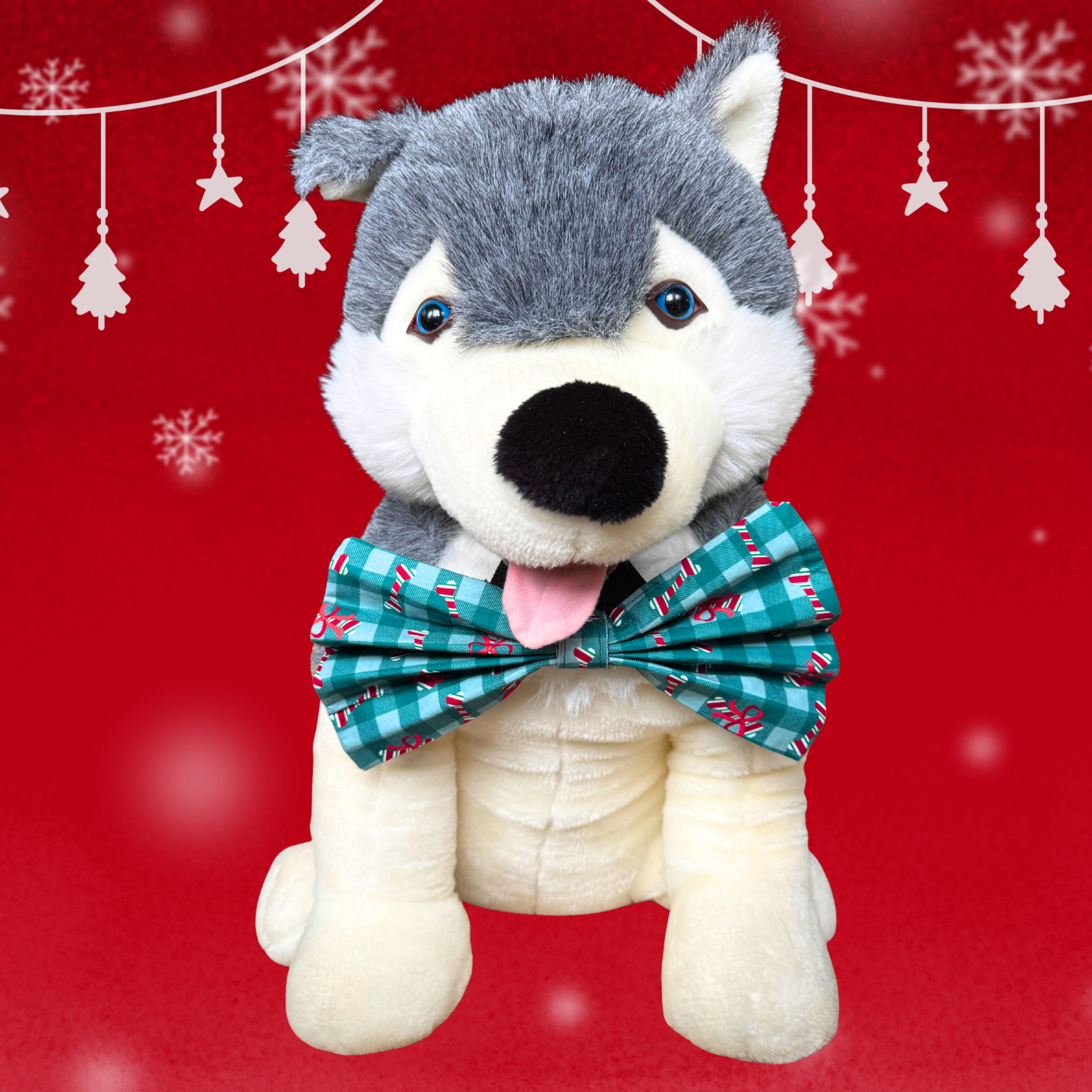 Festive Christmas bowtie in a range of sizes – green check & bone pattern.